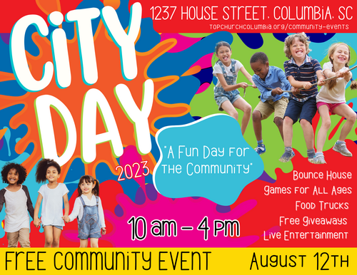 City Day is hosted and founded by Tabernacle of Praise Church Columbia (TOPCC). City Day is free, faith-based, and open to the general public in the local community of Columbia, SC. At City Day, there are free giveaways, food trucks, games, prizes, music, and more! This is a family-friendly event open to the community of Columbia.